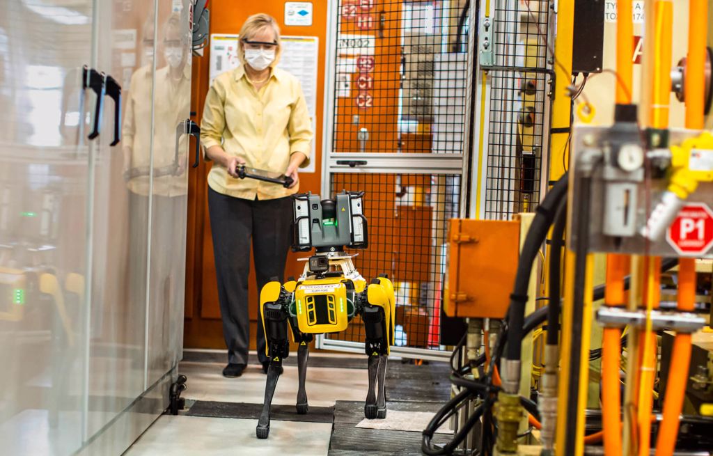 DEARBORN, Michigan, 27.7.2020 – Nämä nelijalkaiset koiramaiset robotit osaavat istua, antaa tassua ja kieriä. Tämän lisäksi ne osaavat käyttää 360-asteista kameraskanneria, liikkua 30 asteen kulmassa olevilla pinnoilla ja nousta portaita tunteja kerrallaan.